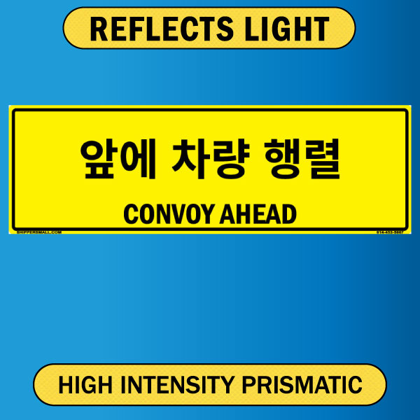 Enhance the safety and coordination of your convoy operations with our "CONVOY AHEAD" sign. This bilingual Korean and English sign is crafted from high-intensity prismatic, highly reflective 0.063 aluminum substrate, ensuring maximum visibility and durability. Built to withstand tough conditions, it offers a longevity of over 10 years under normal usage.