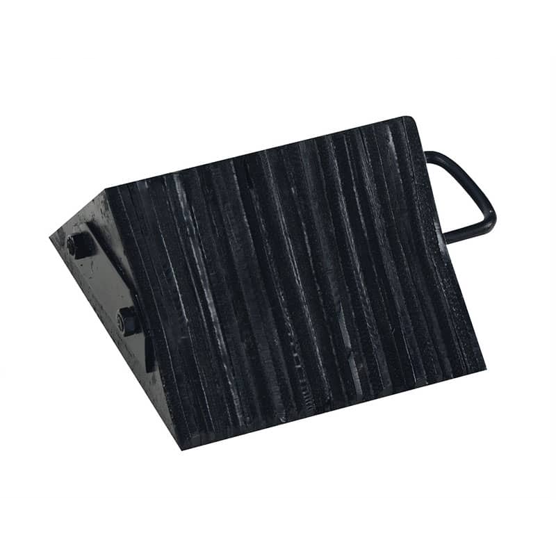 Constructed of reinforced rubber to provide a sure grip on virtually any surface. Curved surface contours to fit tires. Rubber resists tearing, abrasion, ozone weathering, etc. Functional design is durable in all weather conditions. The Airline Chock is suitable for small and large aircraft. Includes a 36" polypropylene rope with handle and reflectors connected to chocks.